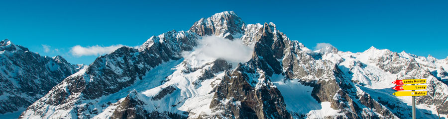 One hundred kilometres between on and off-piste. On the perfectly groomed slopes or down virgin snow chasing after the last snowfall, on skis or a snowboard, in the presence of the highest mountain in Europe. This is the Courmayeur ski area.