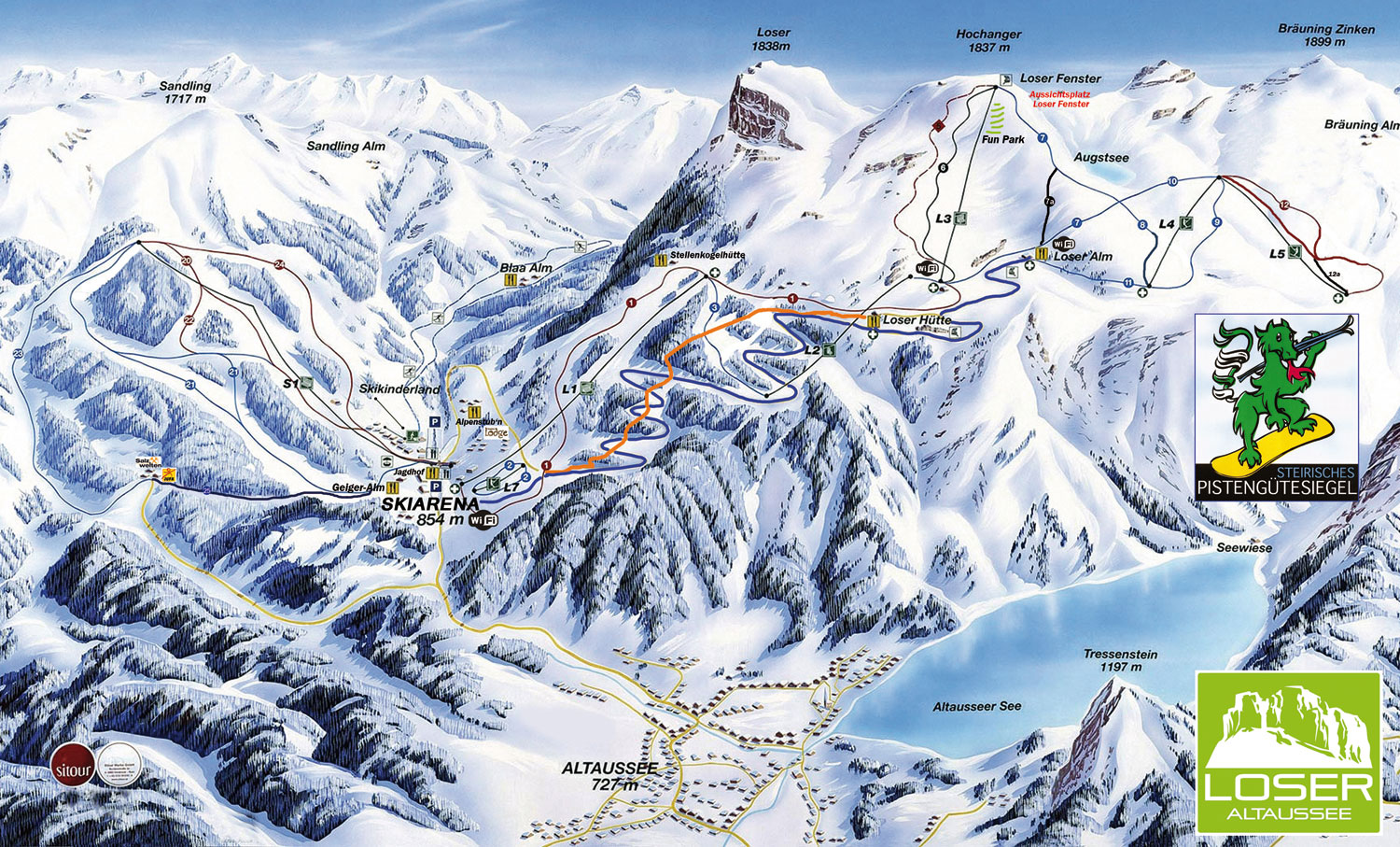 The snow guaranteed Family Ski Resort in Altaussee in Salzkammergut is an attractive ski area with 33 varied and perfectly groomed runs as well was with fog-free panoramic views into the Ausseerland and the nearby upper Austria.