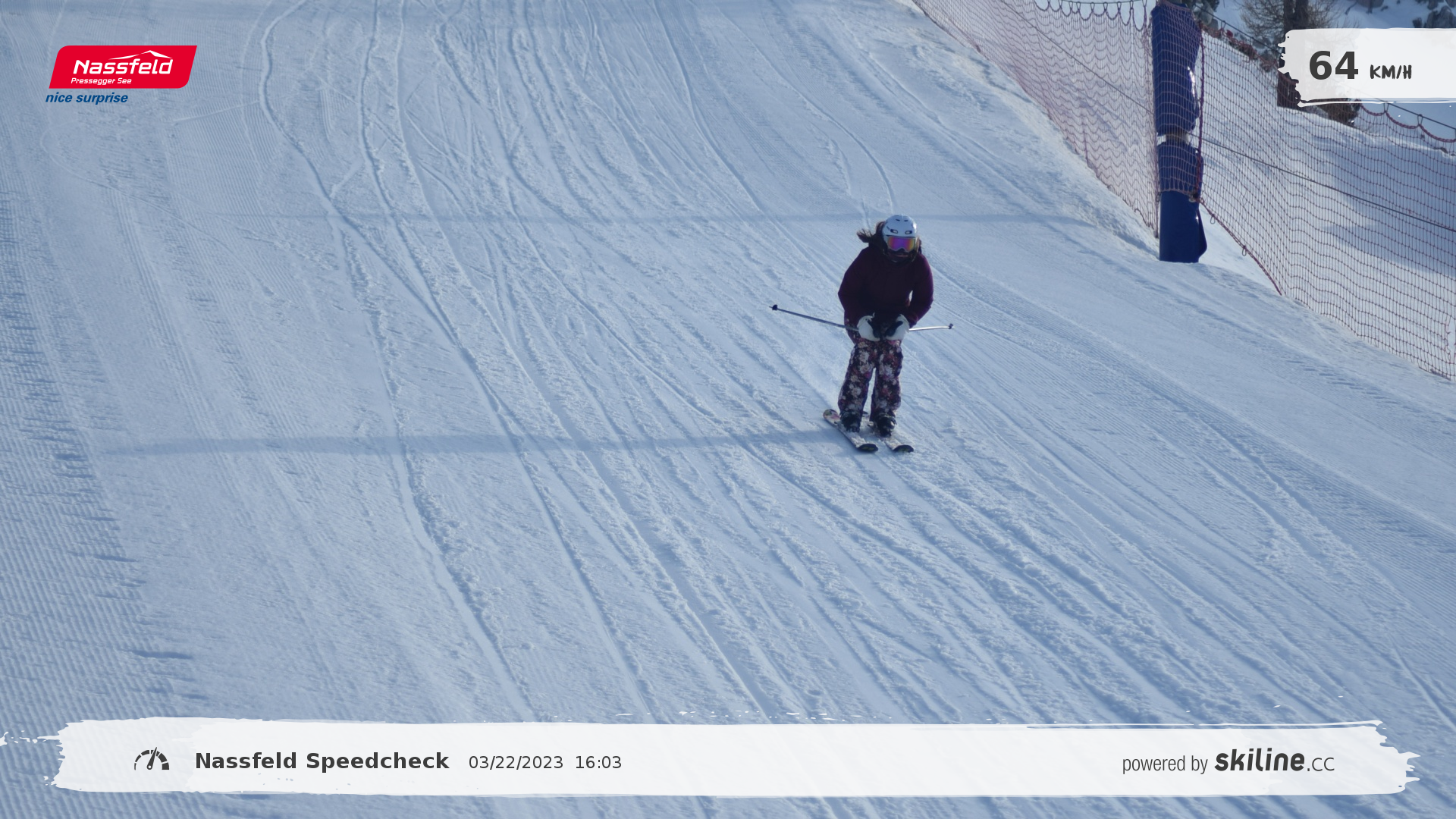 Brigitta Némethné Kiss-Vámosi, March 22, 2023, Nassfeld Speedcheck Start: 16:03   63.5 km/h