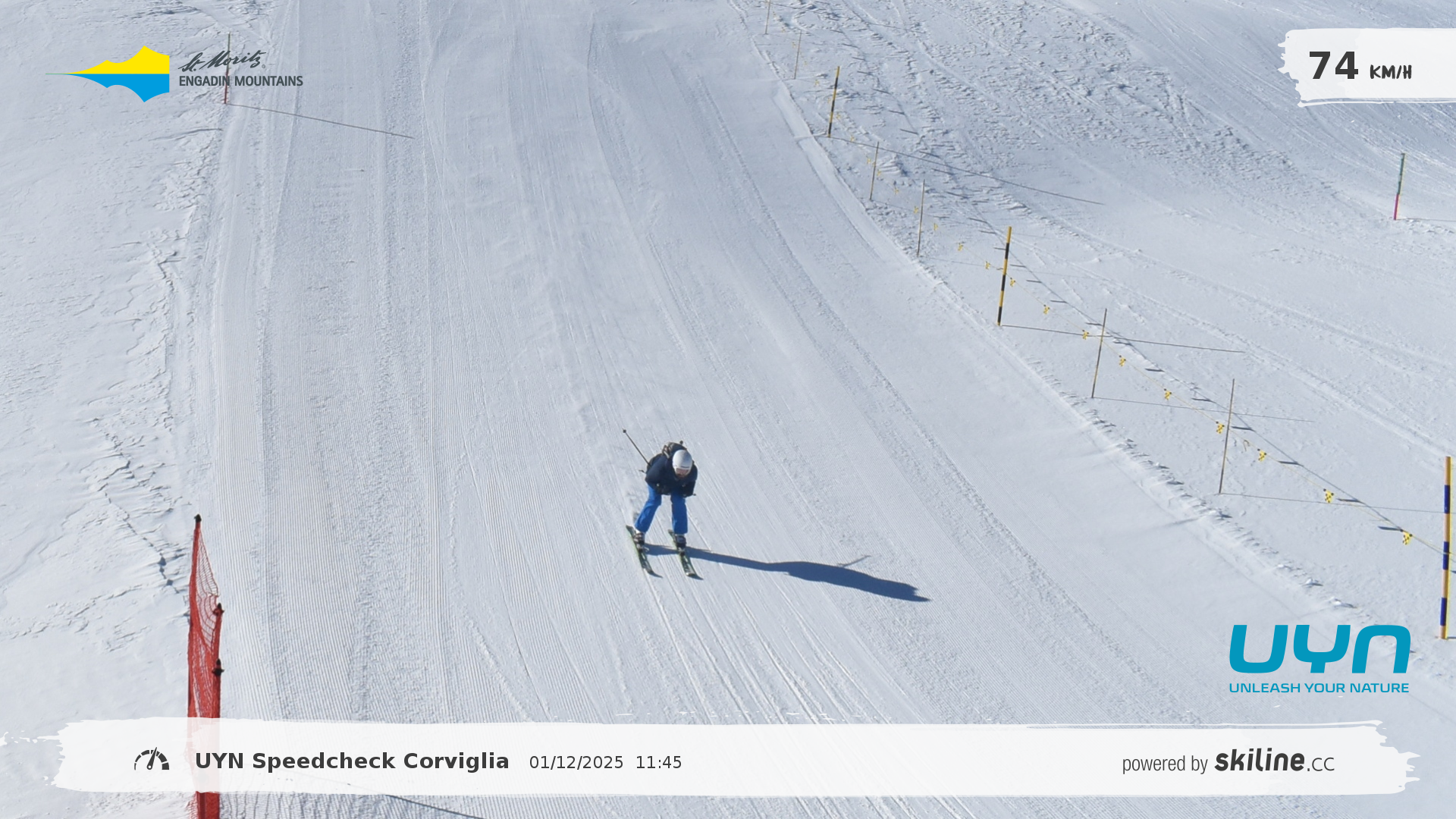 Julian Wössner, January 12, 2025, UYN Speedcheck Corviglia Start: 11:45   73.8 km/h